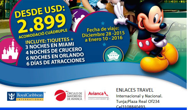 INCLUYE: * Tiquete aéreo desde Bogotá * Impuestos de tiquete * Traslados * Alojamiento * Alimentación * Asistencia Médica Assist Card * Impuestos Hoteleros. NO INCLUYE: * 2% Fee Bancario * Tarjeta de Turismo * Propinas * Trámite de Visa * Gastos no especificados dentro del plan. Se requiere certificado de vacuna fiebre amarilla(Brasil, Jamaica, Bahamas, Panamá) * Las tarifas aplican para esta fecha y están dadas en base Acomodación Triple / Precios por persona en dólares americanos.
