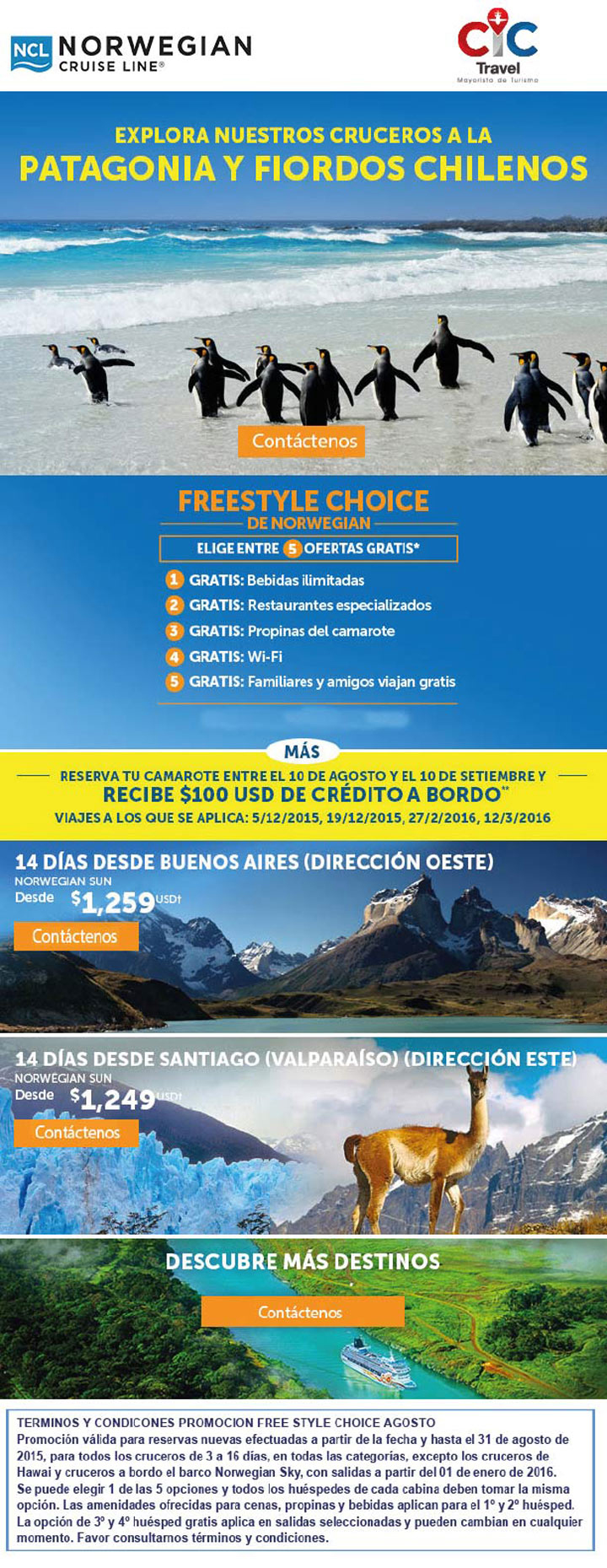 Salida 27 de diciembre 2016. 14 días. Chile, Argentina, Brasil y Perú. Hermosos escenarios naturales.Ver más.