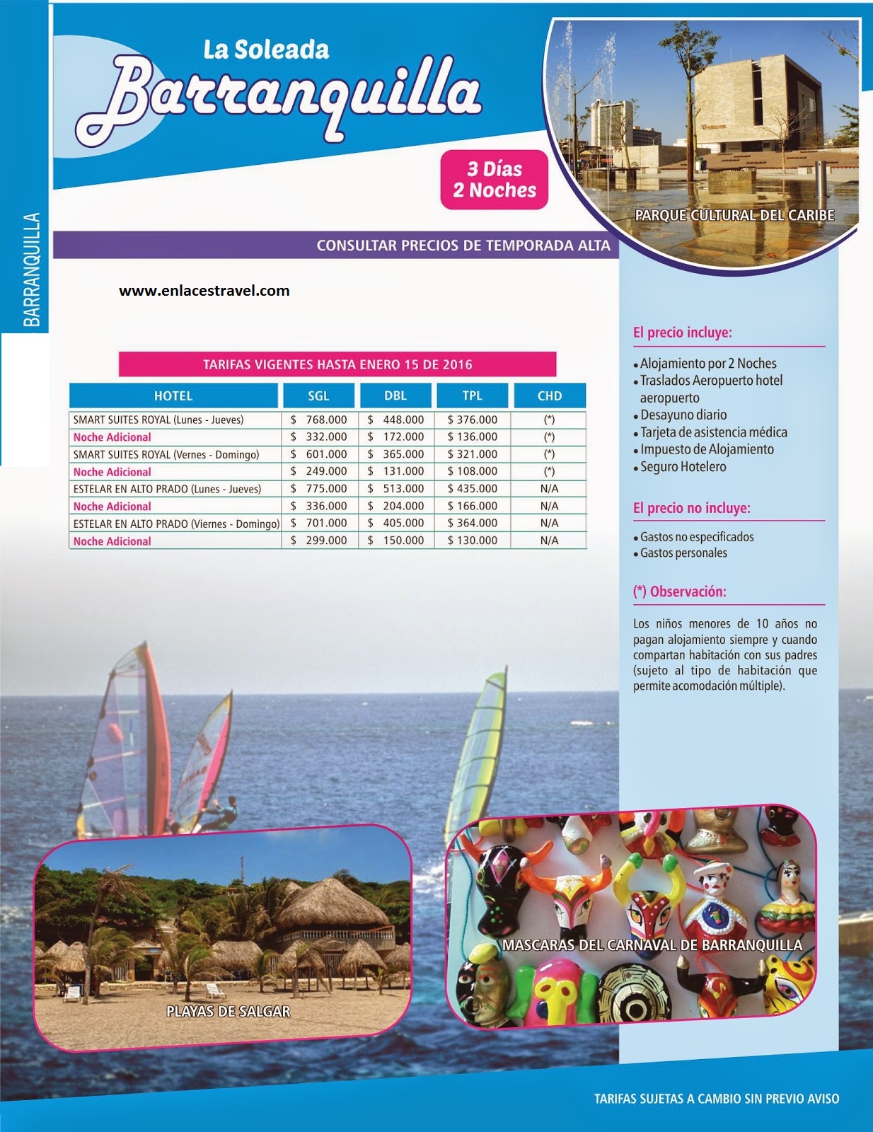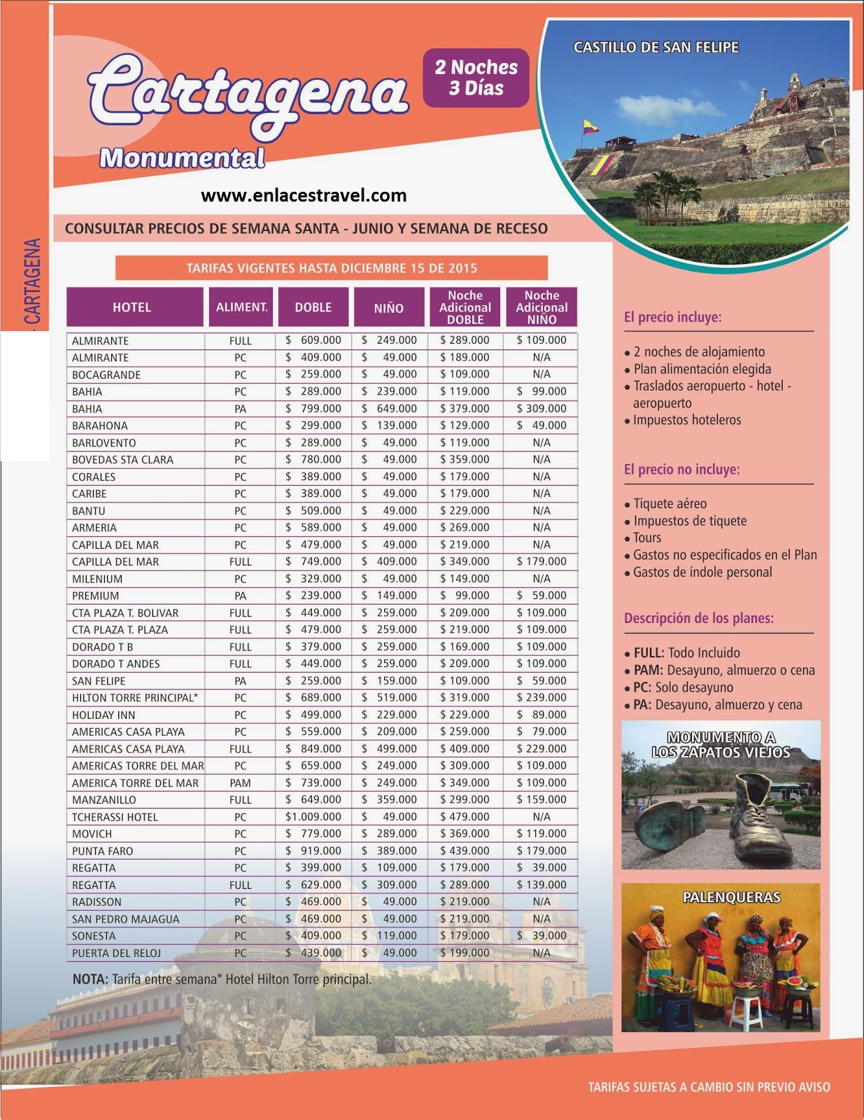 2 noches 3 días. Arme su plan, vea hoteles para escoger. Supertarifas!